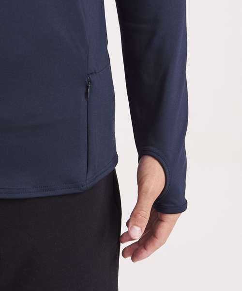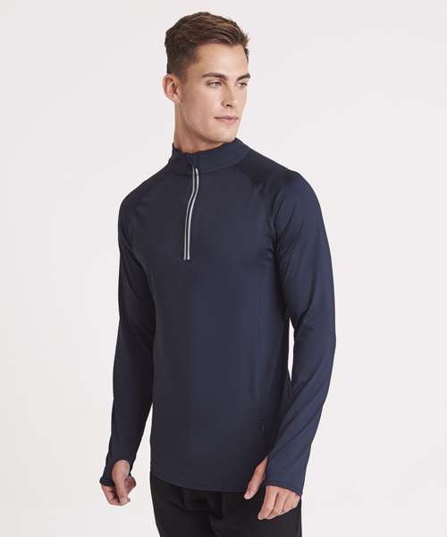 AWDis’ own Cool Flex blended fabric containing elastane that provides stretch for comfort and a great fit. Active fit. Reflective details. Raglan sleeve for ease of movement. 1/2 zip with stand-up collar for ventilation. Chin guard reduces irritation. Simple tear-out label makes it perfect for rebranding.