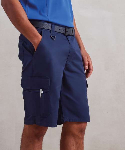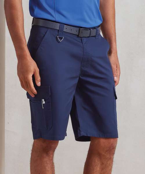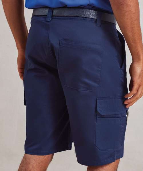 An excellent solution for those who work in roles where full-length trousers can be restrictive to movement. A hardwearing, durable and practical pair of cargo shorts with multi mobile-friendly pockets for carrying essential kit. There's loops to the waistband to facilitate a belt and a metal button and covered zip-fly for secure fastening. A relaxed workwear style for the warmer months whilst also proving to be a smart solution for customer facing roles. A highly versatile pair of men's cargo shorts that are washable to 60C. Made with certified recycled polyester.